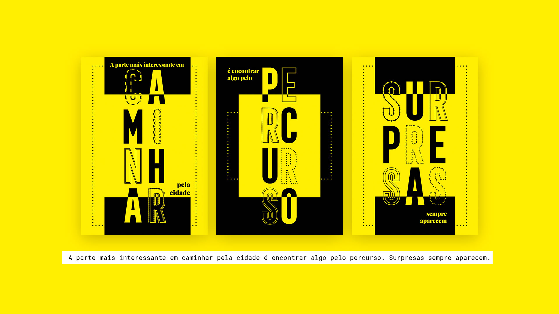 "The most interesting part of walking around the city is discovering something along the way; surprises always appear." - This phrase has been divided into three parts to create a storytelling sequence across three posters. The final poster concludes by emphasizing that surprises can occur at any moment. Â This message delves into the enchantment found in the day-to-day moments.Â